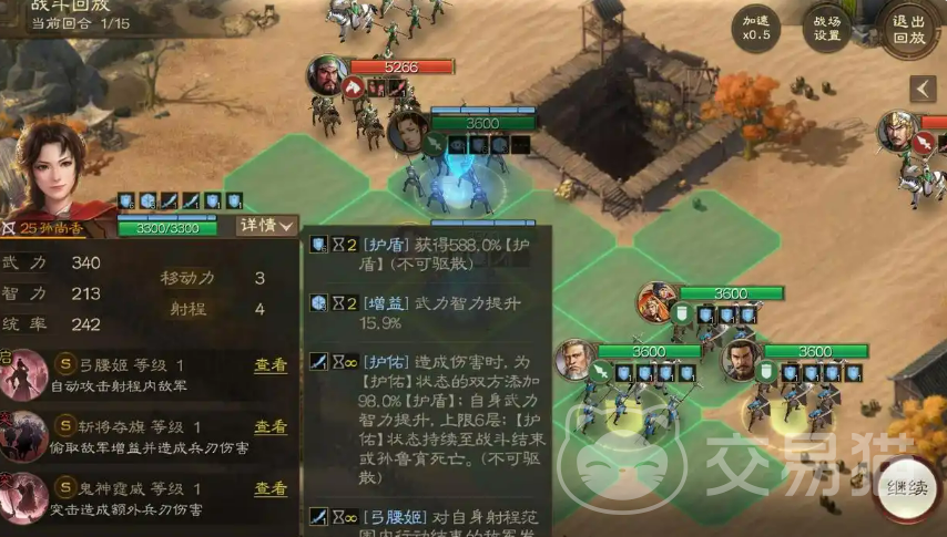 首先,孙鲁育的属性成长相当不错,智力和统率在五御的角色中都算是比较优秀的存在。特别是智力,3.49的成长让她在战场上的辅助效果更上一层楼。别小看了她那样的法师身材,她绝对是一个非常有潜力的存在。更别提她自带的战法【并锋相佑】了,这是一个能够为友军提供超高护盾的核心战法,每回合的护盾叠加能让你在战斗中轻松保持优势。