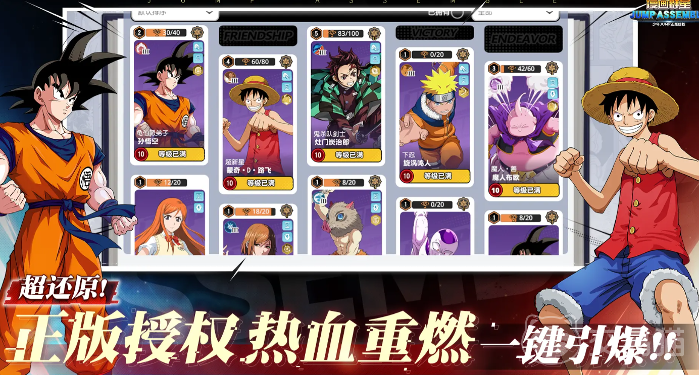 游戏内置的所有英雄角色,都是来源于日系的动漫角色,其中所有的本命英雄,不只是有漩涡鸣人、虎杖悠仁、路飞等等角色,也有许多的强大隐藏角色,等待玩家解锁,